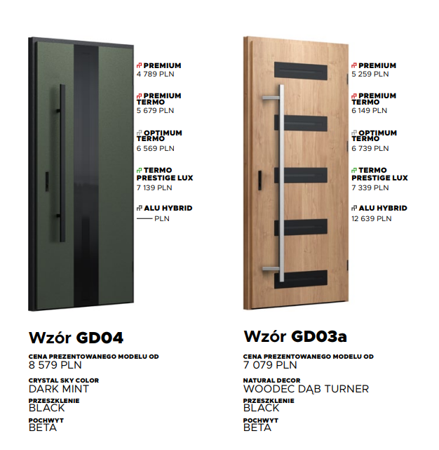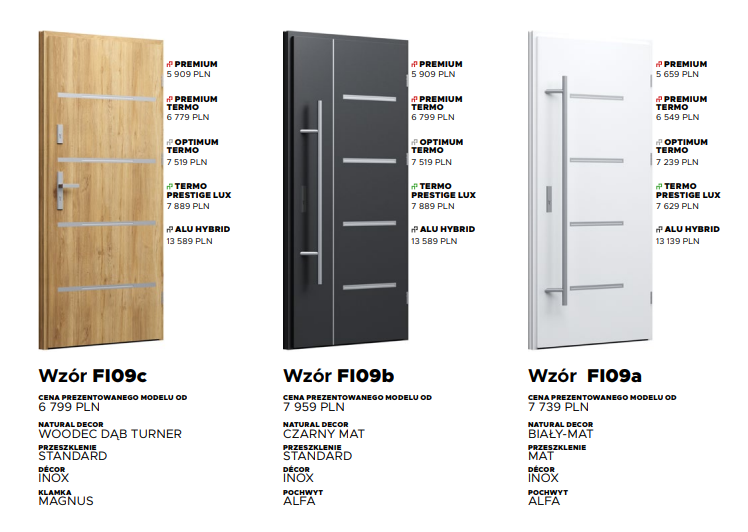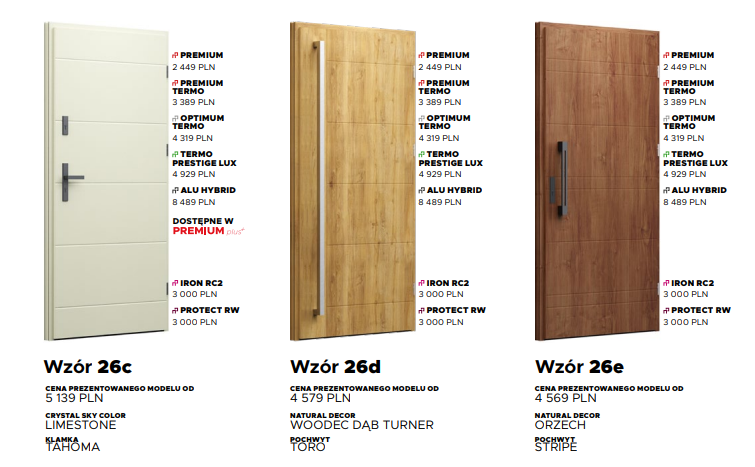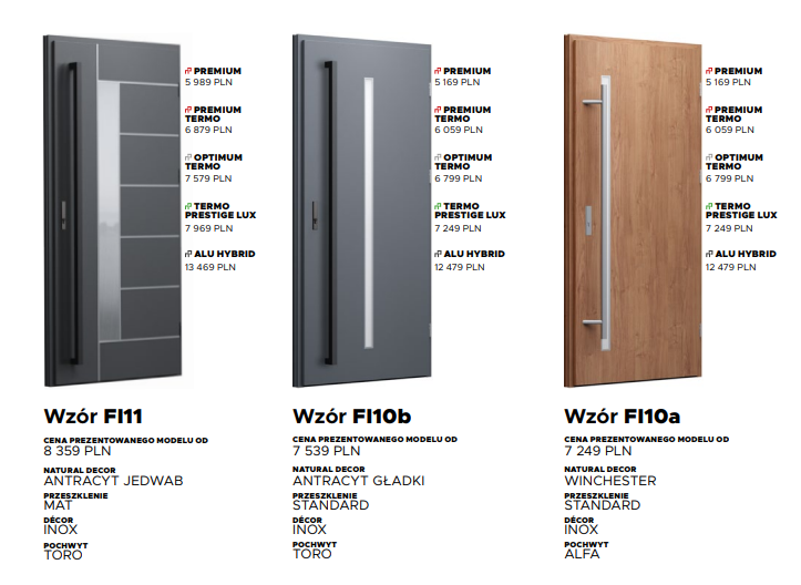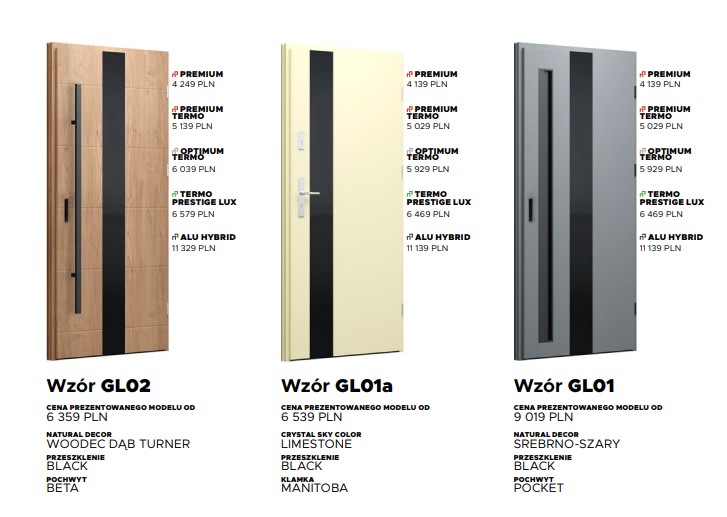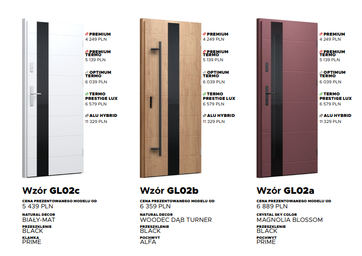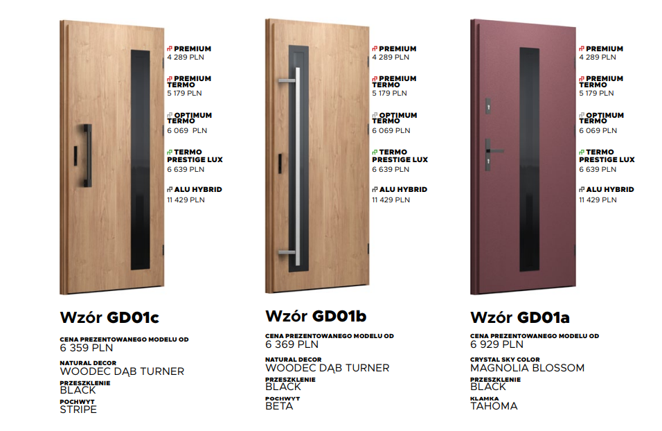 Każde drzwi zewnętrzne można skonfigurować zgodnie z indywidualnymi potrzebami. Dostępne opcje obejmują: